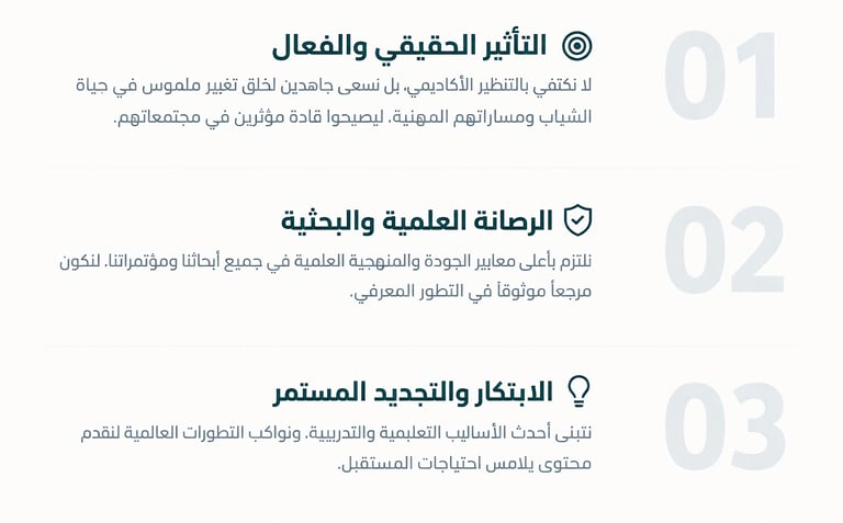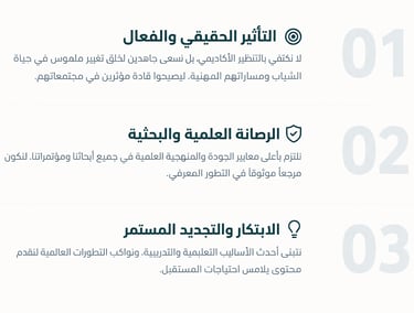 نعمل بروح شبابية طموحة على إحداث تأثير حقيقي في المشهد التعليمي. نقدم دورات تدريبية شاملة، وننظم مؤتمرات علمية وأبحاثاً رصينة لتمكين الشباب وصقل مهاراتهم، إيماناً منا بأنهم صناع القرار وقادة التغيير.